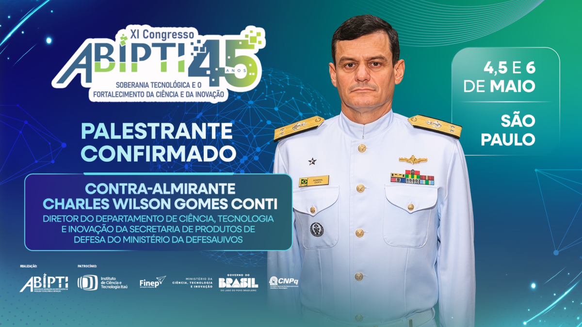 27/04/2026O XI Congresso da ABIPTI confirmou a participação do Contra-Almirante Conti, Diretor do Departamento de Ciência, Tecnologia e Inovação da Secretaria de Produtos de Defesa do Ministério da Defesa, como palestrante convidado para o painel intitulado “Soberania Tecnológica e Segurança Nacional: um olhar sobre áreas e indicadores estratégicos”. O evento ocorrerá em São Paulo, entre os dias 4 e 6 de maio, e marca os 45 anos da instituição sob o tema central “Soberania tecnológica e o fortalecimento da ciência e da inovação”. A proposta do encontro é estabelecer a interlocução entre os atores do ecossistema de ciência, tecnologia e inovação para discutir o futuro estratégico do país.
